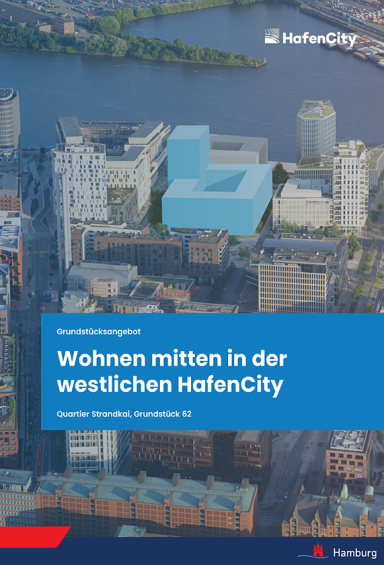 Die HafenCity Hamburg GmbH offeriert im Rahmen eines Konzeptvergabeverfahrens das Grundstück 62 im Quartier Strandkai in der HafenCity. Es handelt sich hierbei um das letzte noch unbebaute Wohnbaugrundstück in der westlichen HafenCity. Die Bebauung des Grundstücks wird damit den Zusammenschluss zwischen der kürzlich fertiggestellten Strandkaispitze und dem Überseequartier vollziehen. Das Grundstück ist 5.213 m² groß und entspricht dem Flurstück 2486 der Gemarkung Altstadt-Süd im Bezirk Hamburg-Mitte. Es ist eine Bebauung mit insgesamt mindestens 31.000 m² anrechenbarer Geschossfläche vorgesehen.